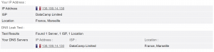 We also conducted a DNS leak test. No DNS leaks are observed on the HMA VPN servers, which is good. We would like to point out that HMA VPN offers both IPv4 and IPv6 leak protection.