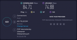 For testing, the same server was used to level out the speed loss due to ping. But even in this case, the indicator is far from the desired 10-20%, so we put 3 out of 5 points.