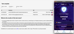 This service successfully passed the DNS leak test because our country was not revealed during the test, but as you can see in the screenshots, the server location in all three cases did not match the test data, which is quite strange.