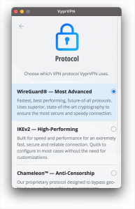 WireGuard is now supported on all platforms, along with OpenVPN and IKEv2. VyprVPN’s custom Chameleon 2.0 protocol has been improved even better to circumvent aggressive VPN blocking (this is a new option in the iOS app, which is nice to see).
