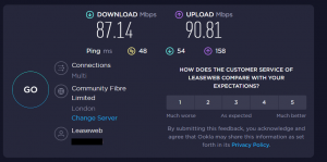We were pleasantly surprised with the speeds we were getting in our tests. The recorded loss on distant servers is insignificant, and when we connected to a server located in London, the results came out even better than we originally had with our ISP in terms of Download speeds. See for yourself.